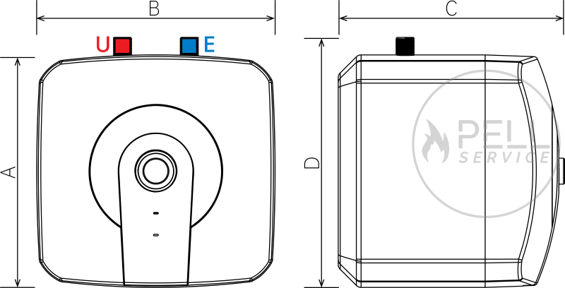 Компактни енергоспестяващи електрически бойлери с вертикален монтаж и изводи