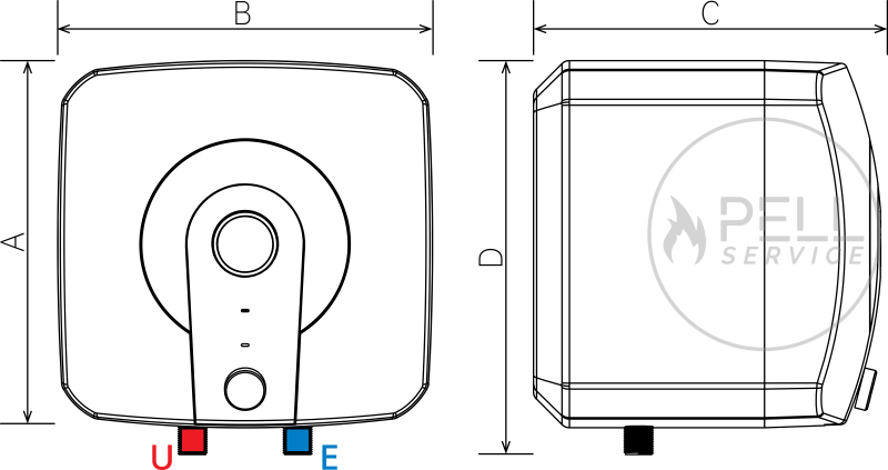 Компактни енергоспестяващи електрически бойлери с вертикален монтаж и изводи